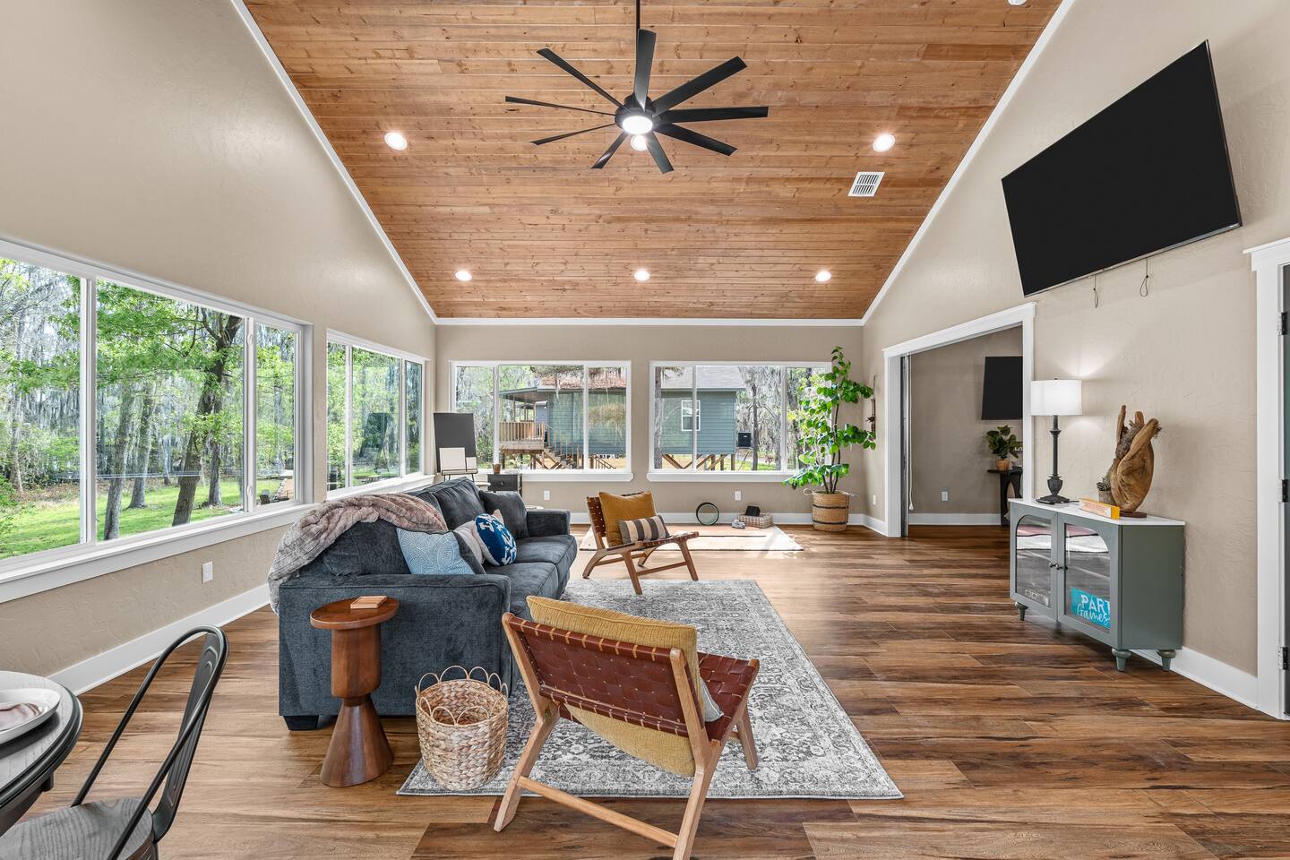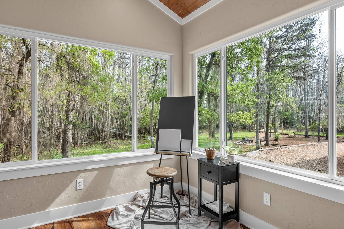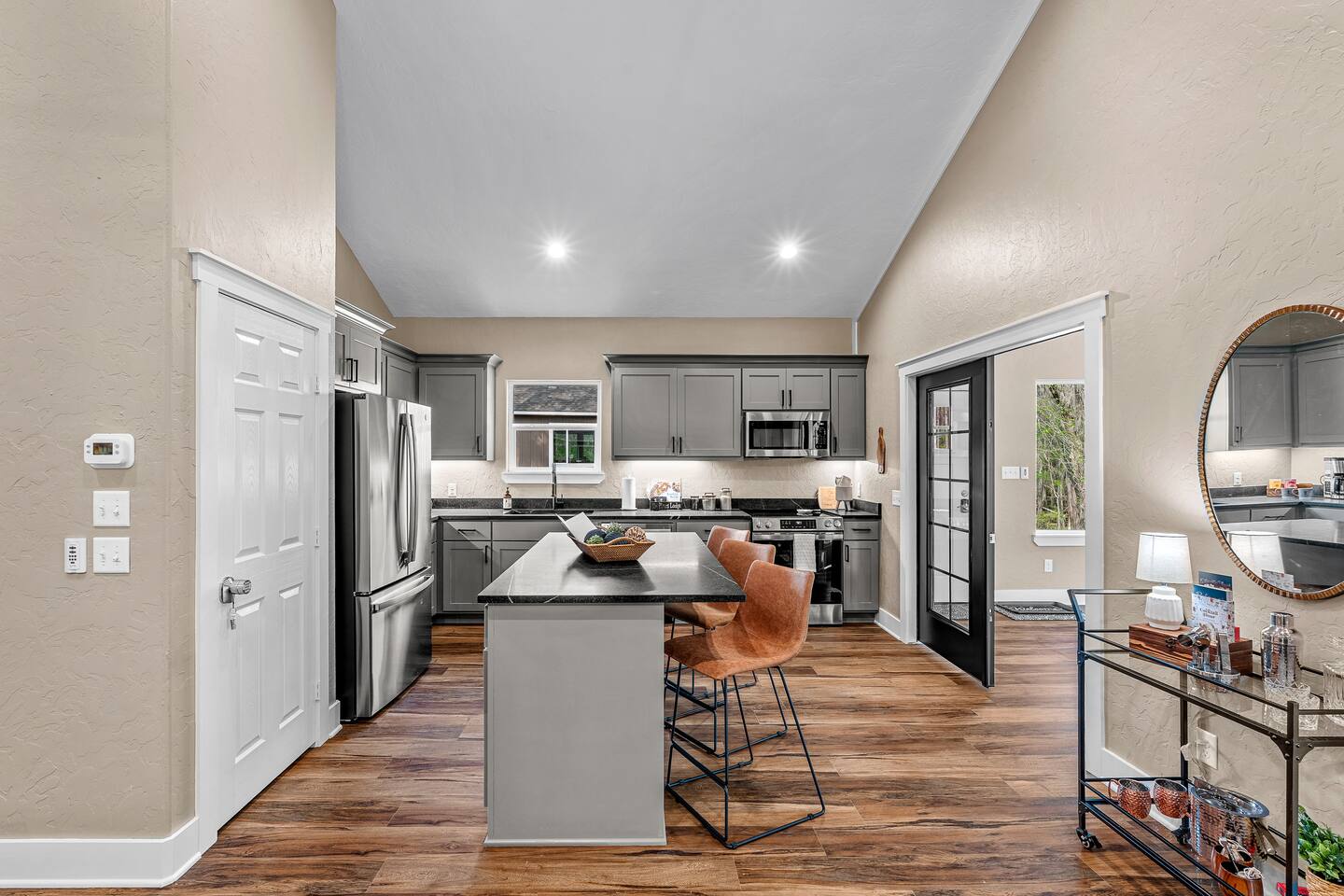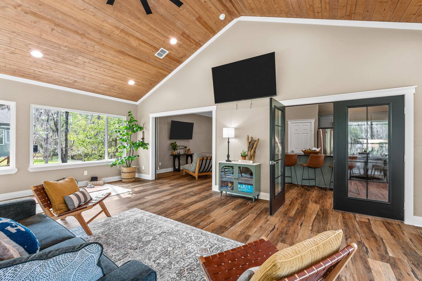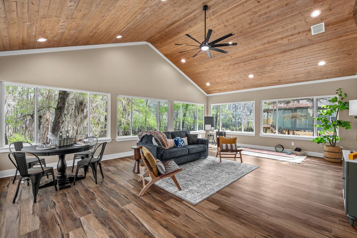 Tucked away on the cypress-lined shores of legendary Caddo, The Grove @ Jackson Arms Hideout sits elevated on piers above the water - giving you the feeling of floating among the treetops. Inside, soaring vaulted ceilings, warm wood floors, and walls of windows frame breathtaking views of Spanish moss and still water. This isn't just a getaway, it's a full reset. Kayak, fish, unwind in the soaking tub, or just watch the herons from your cozy chair while sipping your hot vanilla latte.
