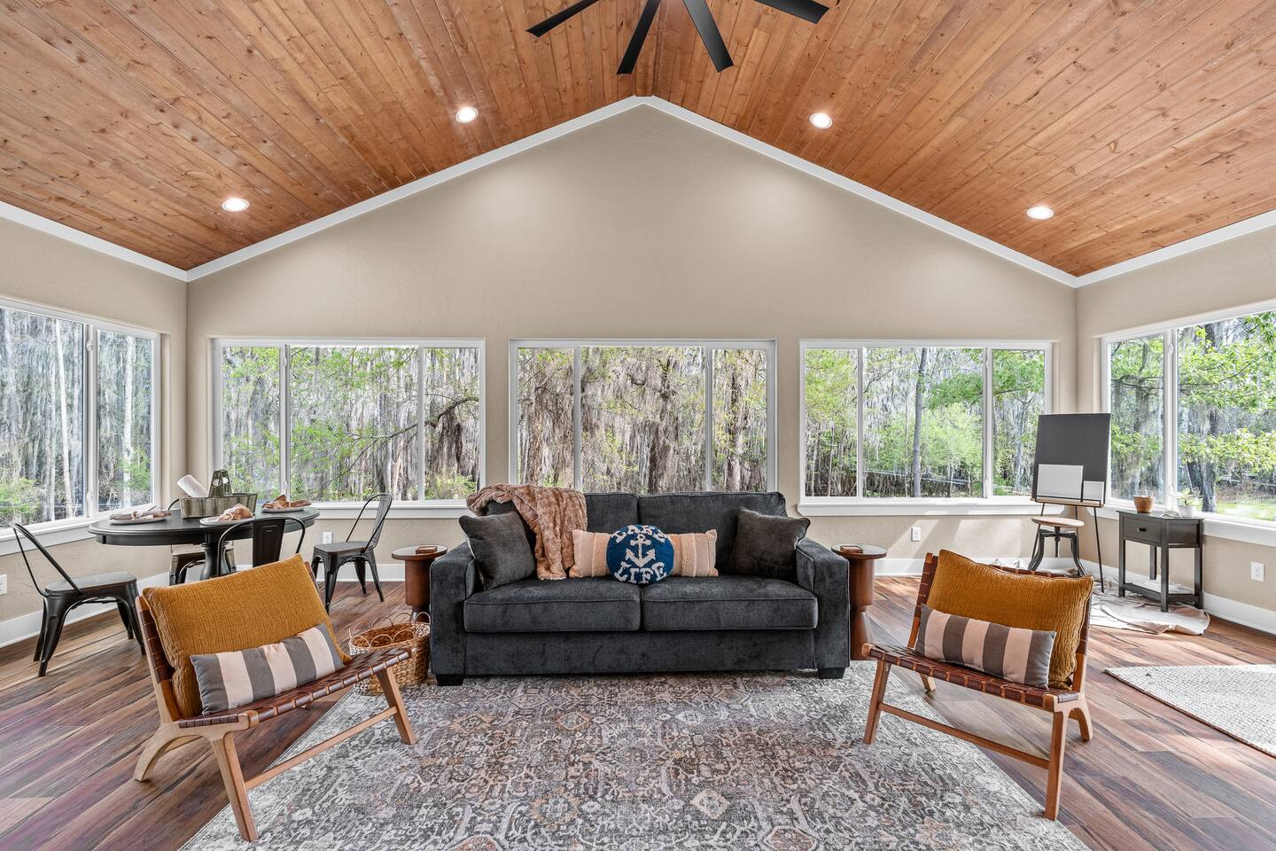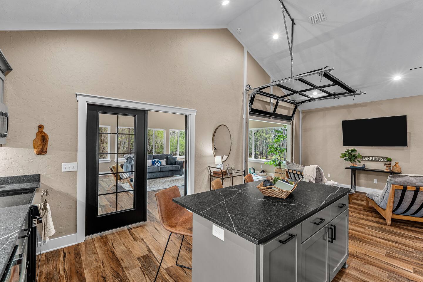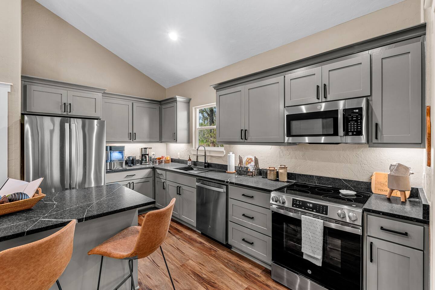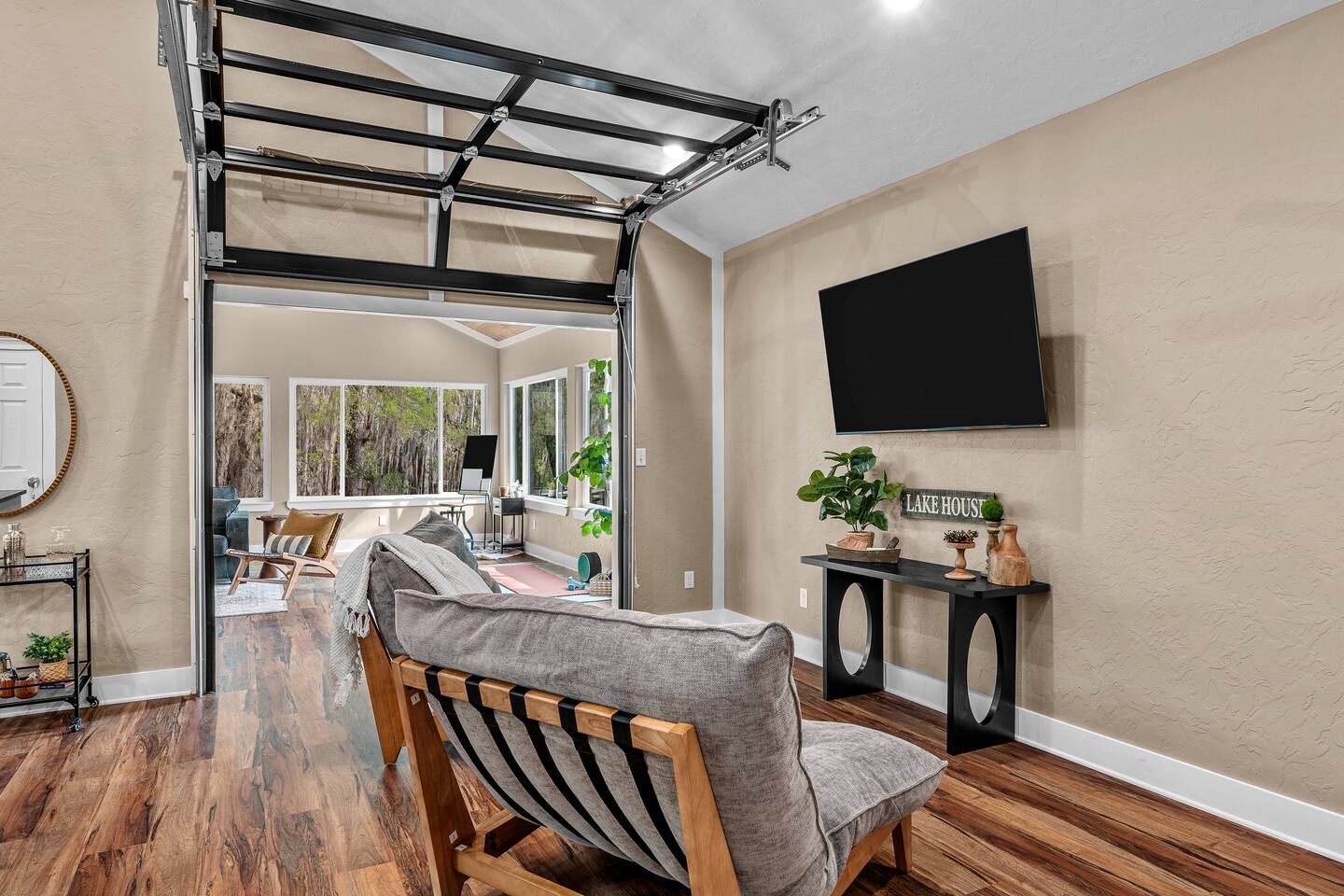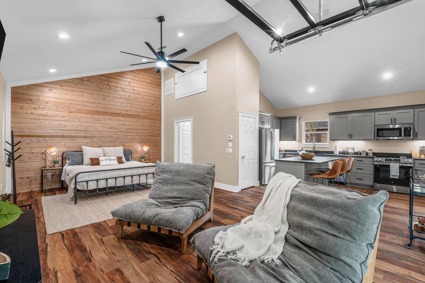 Tucked away on the cypress-lined shores of legendary Caddo, The Grove @ Jackson Arms Hideout sits elevated on piers above the water - giving you the feeling of floating among the treetops. Inside, soaring vaulted ceilings, warm wood floors, and walls of windows frame breathtaking views of Spanish moss and still water. This isn't just a getaway, it's a full reset. Kayak, fish, unwind in the soaking tub, or just watch the herons from your cozy chair while sipping your hot vanilla latte.