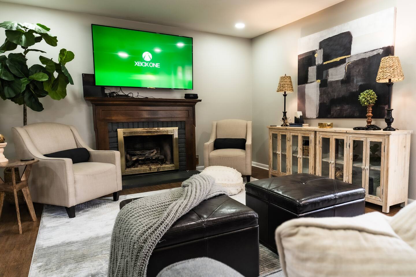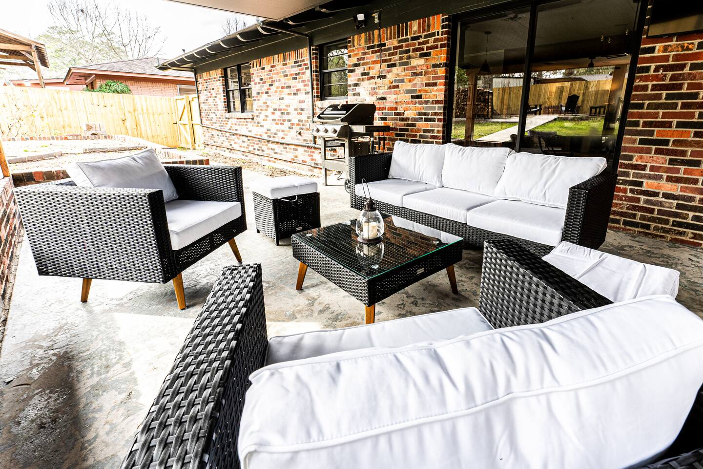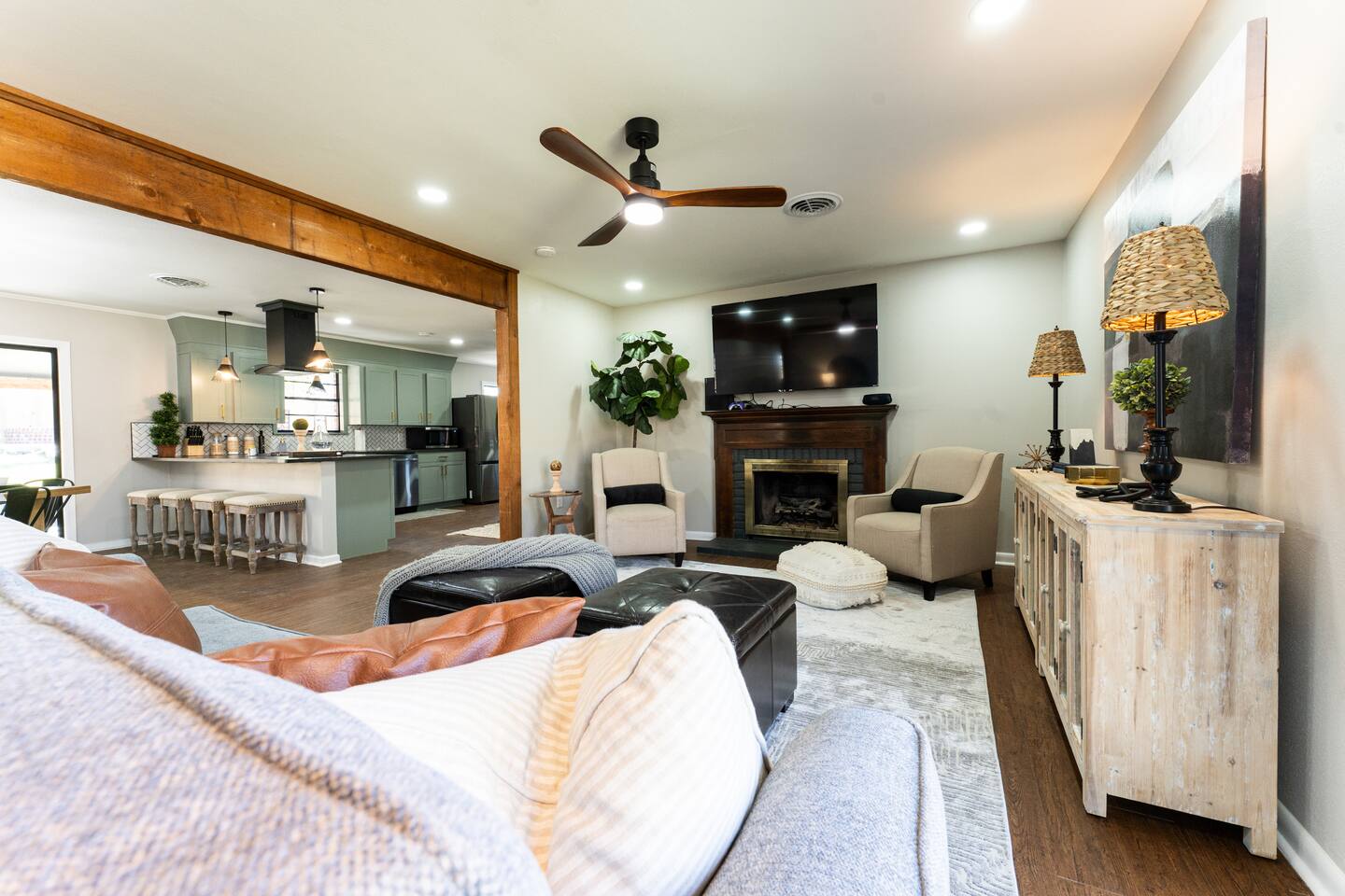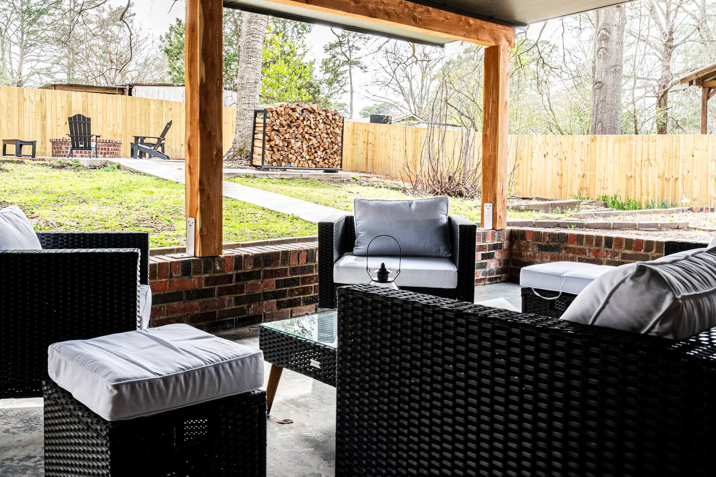 WELCOME TO IRA CORA EXPERIENCE BY @GOSWICKLANE Enter your unique door code, press the check button and enter the threshold to your home away from home. It's open - Ah. Plenty of space in the living, dining and kitchen. It feels just right. Like you never left home. Except you did. The difference being that you don't have a nagging thought of dishes that are overflowing the sink. Two steps in you glance to the left - Oh, it's me, you've been traveling since the early morning so it's been a minute since you've seen that good looking mug. As much as you want to toss your bags down, prop your feet up on the couch and throw your favorite show on the 65" TV, your interest in perusing the Ira Cora outweighs your tired feet. You quickly run to the bedrooms before your extra guest make it in the house. After all, you paid, which means you get to pick. Am I right or am I right? Hhmm, which one is the best? Which one will you pick? Scurrying.... - 1st bedroom on the left - The high points: King bed, spacious, 2 night stands, ensuite bathroom - CA-YUTE (that's "cute" in Texan) - 2nd bedroom on the left - King Bed, cozier room, that gold and dark style is nice, 2 nightstands - 3rd bedroom (in the back) - 2 double beds, nightstand in the middle, full length lit mirror that you'll definitely use at some point. DECISION MADE: 1st bedroom. The ensuite bathroom was the ticket. As you make your way back to it to drop your bags you glance in the guest bathroom on your left. You passed it on your right on the way to the 2nd and 3rd bedrooms but were in too much of a hurry to claim your domain. This time though, curiosity gets the best of you. You can manage a quick peak before your counterparts enter the Ira Cora. As you glance in, you notice a beautifully remodeled spot that is perfect for the rest of the family. The vanity is stunning, the tile work in the tub/shower is gorgeous and the wallpaper is on point. You drop your bags by your bed and happen to check the closets. There's a roll away bed and now it makes sense why this place sleeps 9 instead of 8. You pitter patter back to the living/dining/kitchen area. Come to find out, your people have been in here the whole time. They did what you couldn't. Bags are piled in the entry way, feet propped up and TV is on. Kiddos already have the Xbox fired up checking to see if Fortnite is downloaded (it is - set up and ready to go). You pass the couch noticing all the details of the living room: the big artwork, neat accent tables, sitting chairs, ottomans, lots of cool decorations etc. You think to yourself "There's a lot of great details here. The owners really had their guests in mind curating this place" To your left is the kitchen table for 6 with a bar and stools for an additional 4. You have the room if Grandma and Paw or friends want to have dinner with you. You continue on to the kitchen - it's an easy and natural flow. You notice things like the leathered granite countertops, gas stove, gold accents, coffee bar with espresso machine, accent wall, and a desk with a beautiful view of the back yard. "Wow" you think "I'll really be able to lock in and get some work done here". Hidden in the back of the kitchen is the laundry room with a door that closes so you don't have to be reminded when its time to wash clothes. As your closing the laundry room, you hear the kiddos scream "YES, LET'S GO!". They just found the headset that goes to the XBOX so they can talk with their friends on Fortnite. It's the little things. A quick peak in the cabinets and you realize all the pots, pans and accessories are here to cook up a great meal. You scoot past the dining room table headed towards the back yard and notice a wood burning stove to your left - "How cool is that" you mumble. Your left hand reaches out, grabs the sliding door handle and clicks the button down to unlock paradise. The breeze gently washes over you as you hear wind chimes in the distance. Ah - Peaceful. You glance around the patio to see patio furniture, the outdoor Smart TV and a Weber gas grill behind you. The wood rack & firepit beckon you from a distance. Your mind drifts to daydreams of family S'more time later. A wiry looking tree peaks your curiousity (it's a fig tree - we are really hoping it produces this year for you). There are so many great spots but you decide that the patio is your spot for now. Your booty is on the way to the cushion when you realize you saw a bluetooth speaker sitting on the mantle inside by the TV. You quickly grab it, pour yourself a glass of wine, play your favorite tunes and plant your rear firmly in your happy place. Happy is a typically a mindset but today it's a location. Locate your happy here at Ira Cora. We'd love to have you. *Message us before booking if you have any questions ☆Guest Interaction☆ A member of Team Goswick Lane is just a message away to help you navigate your home-away-from-home. Please use the Airbnb messaging system for the quickest response. Please remember that you are staying in a house, not a hotel. Please treat the space with respect. And respect the neighbors. Quiet hours are from 10PM- 7AM. If any problems arise, we will do our best to act ASAP.