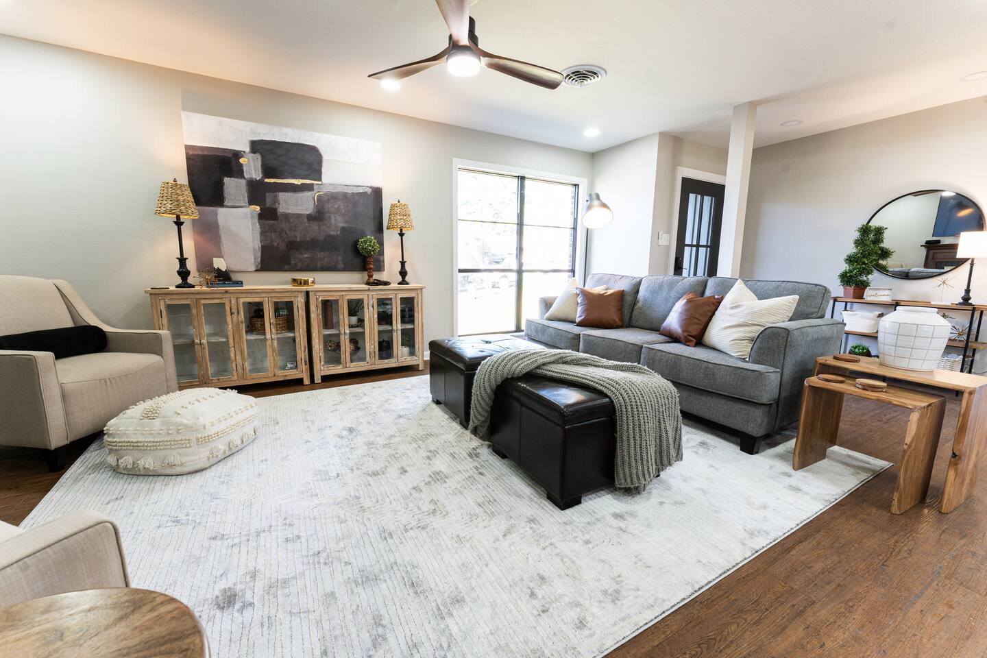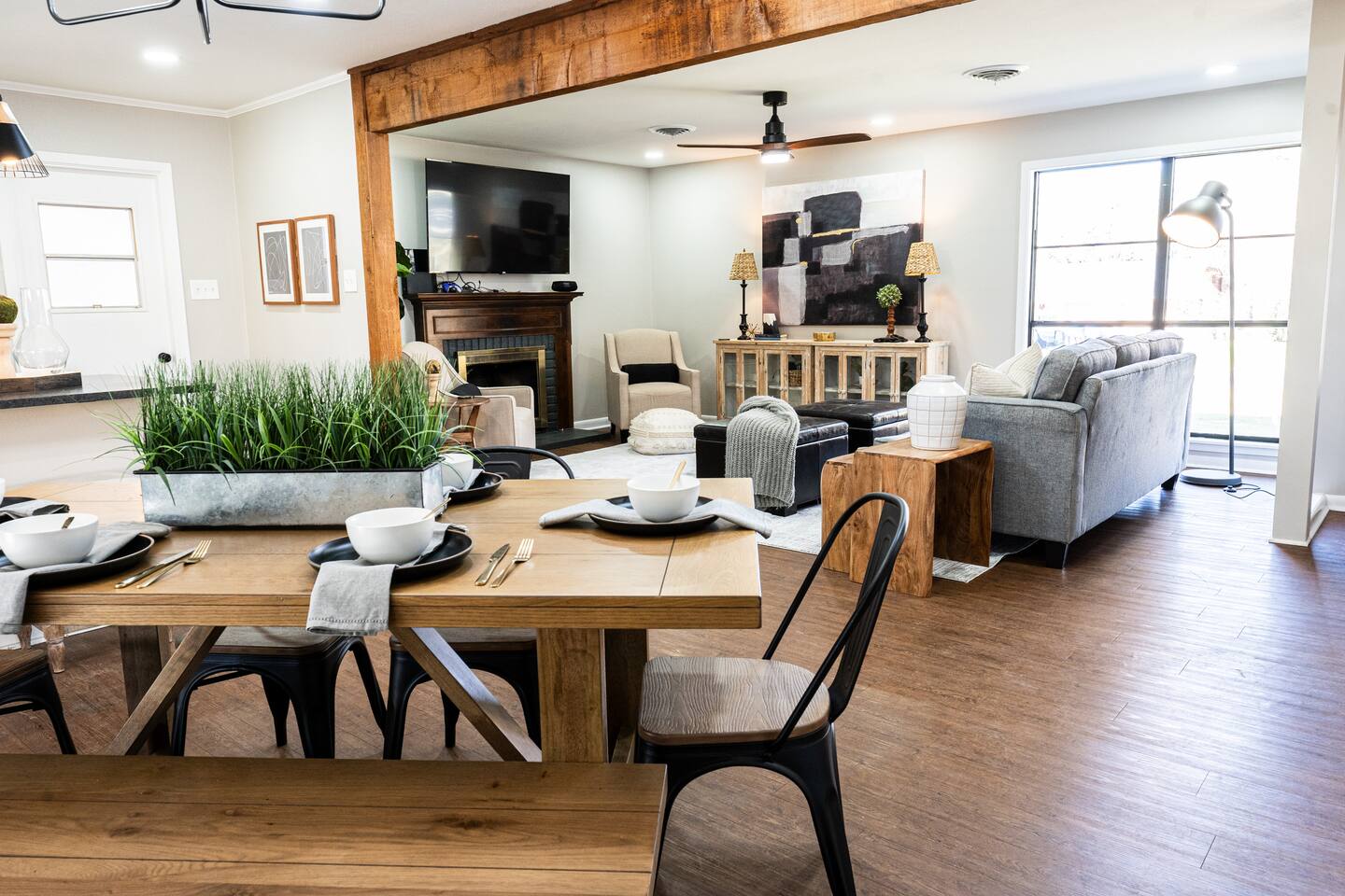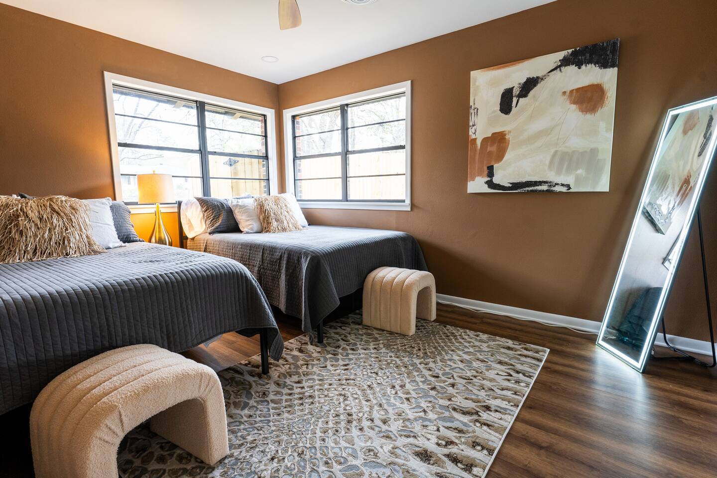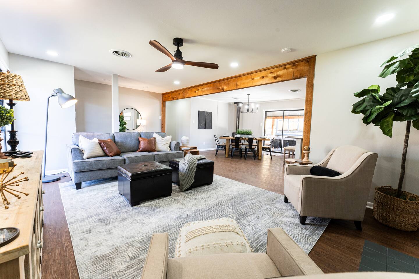 WELCOME TO IRA CORA EXPERIENCE BY @GOSWICKLANE Enter your unique door code, press the check button and enter the threshold to your home away from home. It's open - Ah. Plenty of space in the living, dining and kitchen. It feels just right. Like you never left home. Except you did. The difference being that you don't have a nagging thought of dishes that are overflowing the sink. Two steps in you glance to the left - Oh, it's me, you've been traveling since the early morning so it's been a minute since you've seen that good looking mug. As much as you want to toss your bags down, prop your feet up on the couch and throw your favorite show on the 65" TV, your interest in perusing the Ira Cora outweighs your tired feet. You quickly run to the bedrooms before your extra guest make it in the house. After all, you paid, which means you get to pick. Am I right or am I right? Hhmm, which one is the best? Which one will you pick? Scurrying.... - 1st bedroom on the left - The high points: King bed, spacious, 2 night stands, ensuite bathroom - CA-YUTE (that's "cute" in Texan) - 2nd bedroom on the left - King Bed, cozier room, that gold and dark style is nice, 2 nightstands - 3rd bedroom (in the back) - 2 double beds, nightstand in the middle, full length lit mirror that you'll definitely use at some point. DECISION MADE: 1st bedroom. The ensuite bathroom was the ticket. As you make your way back to it to drop your bags you glance in the guest bathroom on your left. You passed it on your right on the way to the 2nd and 3rd bedrooms but were in too much of a hurry to claim your domain. This time though, curiosity gets the best of you. You can manage a quick peak before your counterparts enter the Ira Cora. As you glance in, you notice a beautifully remodeled spot that is perfect for the rest of the family. The vanity is stunning, the tile work in the tub/shower is gorgeous and the wallpaper is on point. You drop your bags by your bed and happen to check the closets. There's a roll away bed and now it makes sense why this place sleeps 9 instead of 8. You pitter patter back to the living/dining/kitchen area. Come to find out, your people have been in here the whole time. They did what you couldn't. Bags are piled in the entry way, feet propped up and TV is on. Kiddos already have the Xbox fired up checking to see if Fortnite is downloaded (it is - set up and ready to go). You pass the couch noticing all the details of the living room: the big artwork, neat accent tables, sitting chairs, ottomans, lots of cool decorations etc. You think to yourself "There's a lot of great details here. The owners really had their guests in mind curating this place" To your left is the kitchen table for 6 with a bar and stools for an additional 4. You have the room if Grandma and Paw or friends want to have dinner with you. You continue on to the kitchen - it's an easy and natural flow. You notice things like the leathered granite countertops, gas stove, gold accents, coffee bar with espresso machine, accent wall, and a desk with a beautiful view of the back yard. "Wow" you think "I'll really be able to lock in and get some work done here". Hidden in the back of the kitchen is the laundry room with a door that closes so you don't have to be reminded when its time to wash clothes. As your closing the laundry room, you hear the kiddos scream "YES, LET'S GO!". They just found the headset that goes to the XBOX so they can talk with their friends on Fortnite. It's the little things. A quick peak in the cabinets and you realize all the pots, pans and accessories are here to cook up a great meal. You scoot past the dining room table headed towards the back yard and notice a wood burning stove to your left - "How cool is that" you mumble. Your left hand reaches out, grabs the sliding door handle and clicks the button down to unlock paradise. The breeze gently washes over you as you hear wind chimes in the distance. Ah - Peaceful. You glance around the patio to see patio furniture, the outdoor Smart TV and a Weber gas grill behind you. The wood rack & firepit beckon you from a distance. Your mind drifts to daydreams of family S'more time later. A wiry looking tree peaks your curiousity (it's a fig tree - we are really hoping it produces this year for you). There are so many great spots but you decide that the patio is your spot for now. Your booty is on the way to the cushion when you realize you saw a bluetooth speaker sitting on the mantle inside by the TV. You quickly grab it, pour yourself a glass of wine, play your favorite tunes and plant your rear firmly in your happy place. Happy is a typically a mindset but today it's a location. Locate your happy here at Ira Cora. We'd love to have you. *Message us before booking if you have any questions ☆Guest Interaction☆ A member of Team Goswick Lane is just a message away to help you navigate your home-away-from-home. Please use the Airbnb messaging system for the quickest response. Please remember that you are staying in a house, not a hotel. Please treat the space with respect. And respect the neighbors. Quiet hours are from 10PM- 7AM. If any problems arise, we will do our best to act ASAP.